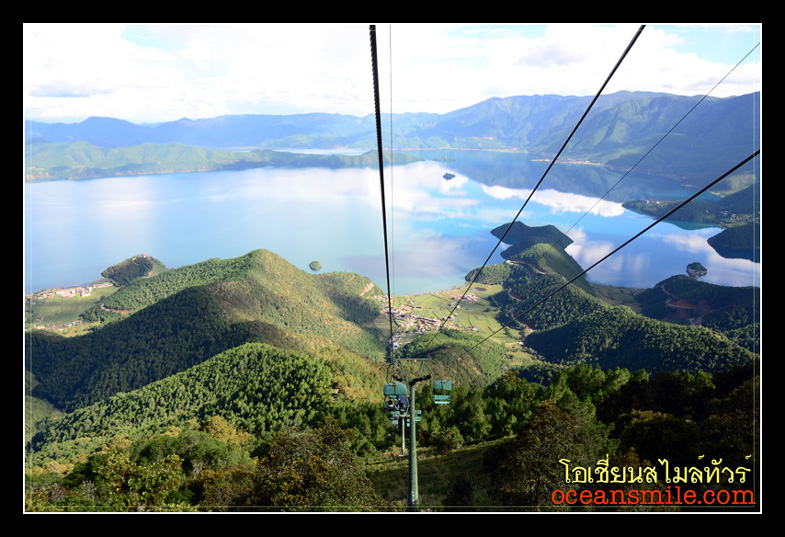 กระเช้าที่ทะเลสาบหลูกูหู ขึ้นภูเขาเทพธิดาเก๋อมู่ หรือ ภูเขาสิงโต