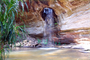 น้ำตกลงรูหนึ่งเดียวในเมืองไทย น้ำตกแสงจันทร์เป็นน้ำตกที่มีลักษณะพิเศษคือสายน้ำตกจะไหลตกลงมาผ่านหน้าผาที่เป็นปล่องหินคล้ายรู |